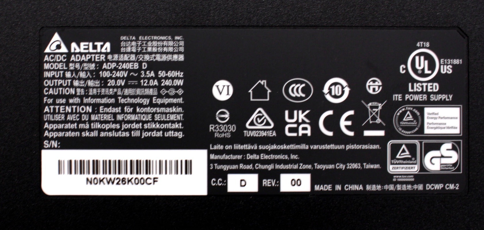 Asus Rog Zephyrus Duo 15 SE GX551QM 240W 4.5MM x 3.0MM Gaming Laptop Adapter